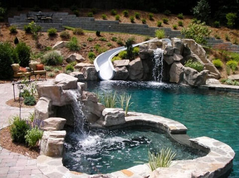 这种泻湖风格的泳池设有水滑梯,瀑布,岩石洞穴和定制的SPA池,可供全家大小共度欢乐时光。在过去几年里,越来越多的人喜欢在私人住宅里打造像这类型的泳池,将旅游胜地的自然风光“搬”到家里。