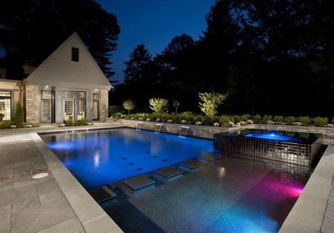 今年,几何形状的泳池在业内再次掀起了一阵热潮。有别于以往简单的外观,最新的设计采用了特殊的材料,泳池边的装潢很显艺术气息。此外,这款泳池还设有瀑布,水下吧椅等。夜晚,多彩的LED灯让泳池显得别样优雅。